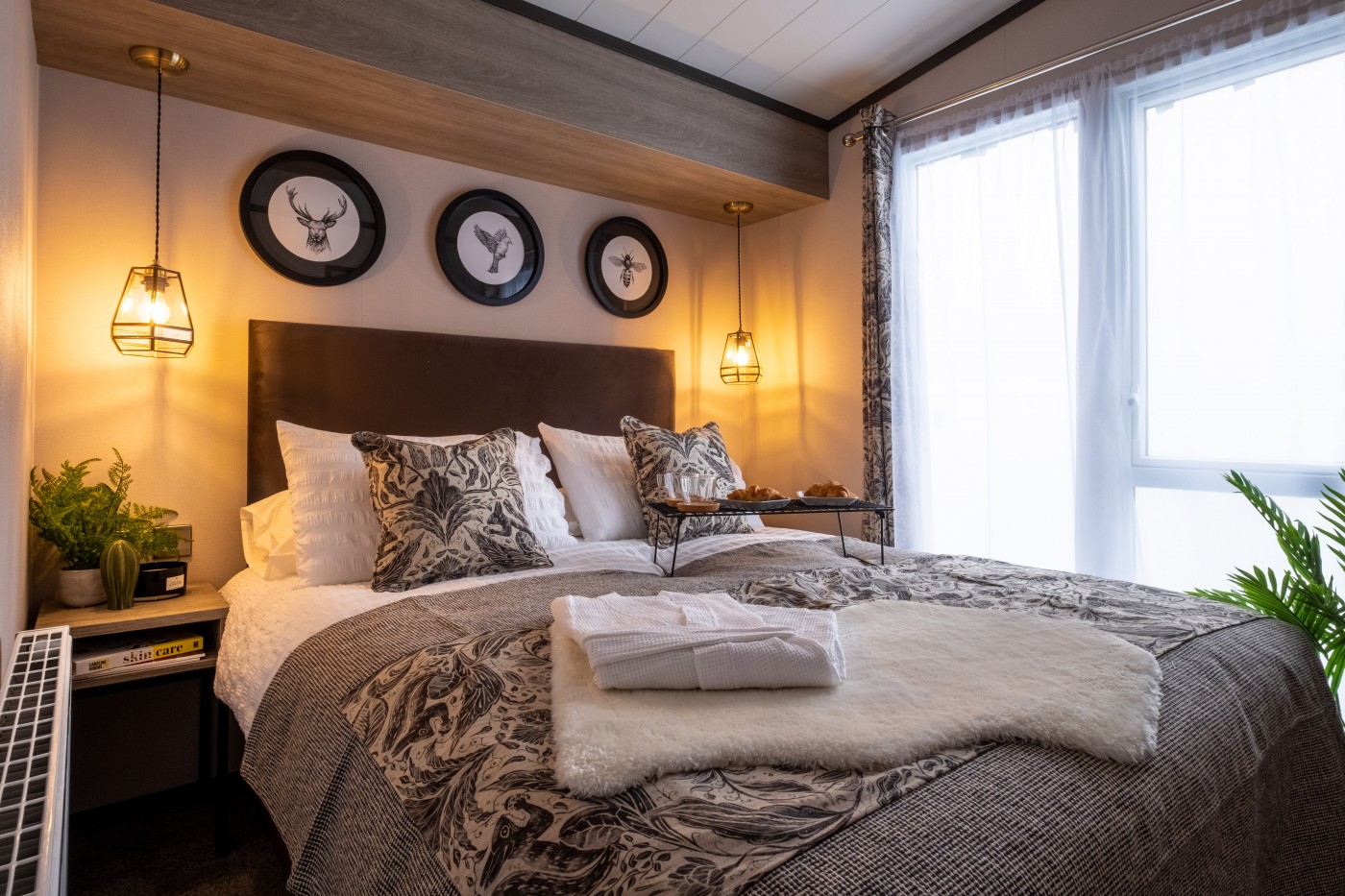 This luxury holiday home includes a king size double bedroom with walk-in wardrobe and USB chargers.